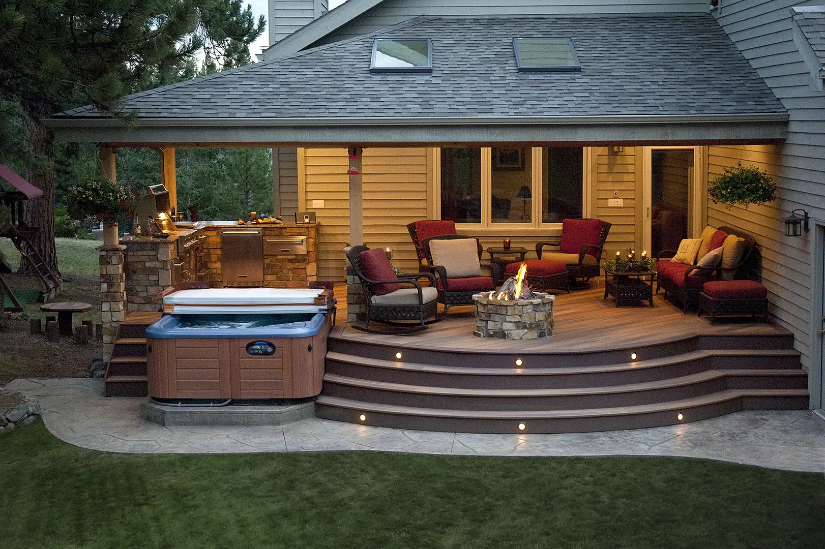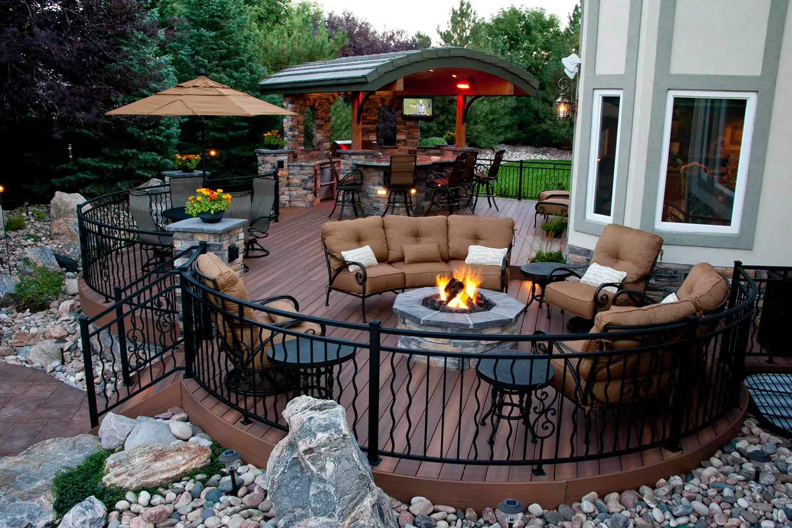 Rolling Ridge builds composite decks the right way: solid framing, clean lines, tight details, and a layout that actually fits how you’ll use the space. We’ll help you choose the right product based on color, texture, heat retention, traction, and budget, then finish it off with railings, stairs, lighting, and custom features that make it feel like an outdoor room – not a platform.