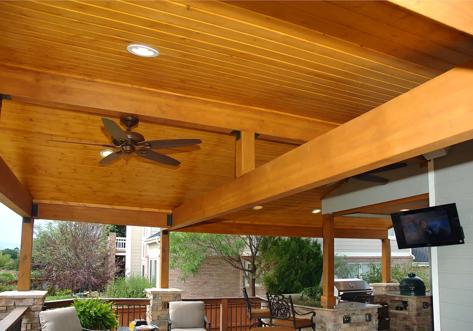 We build roof covers that look like they belong on the house, not like an afterthought bolted on later. From simple, clean-lined covers to larger structures with finished ceilings, lighting, and integrated gutters, we focus on proportion, structural integrity, and a polished look that complements your architecture.