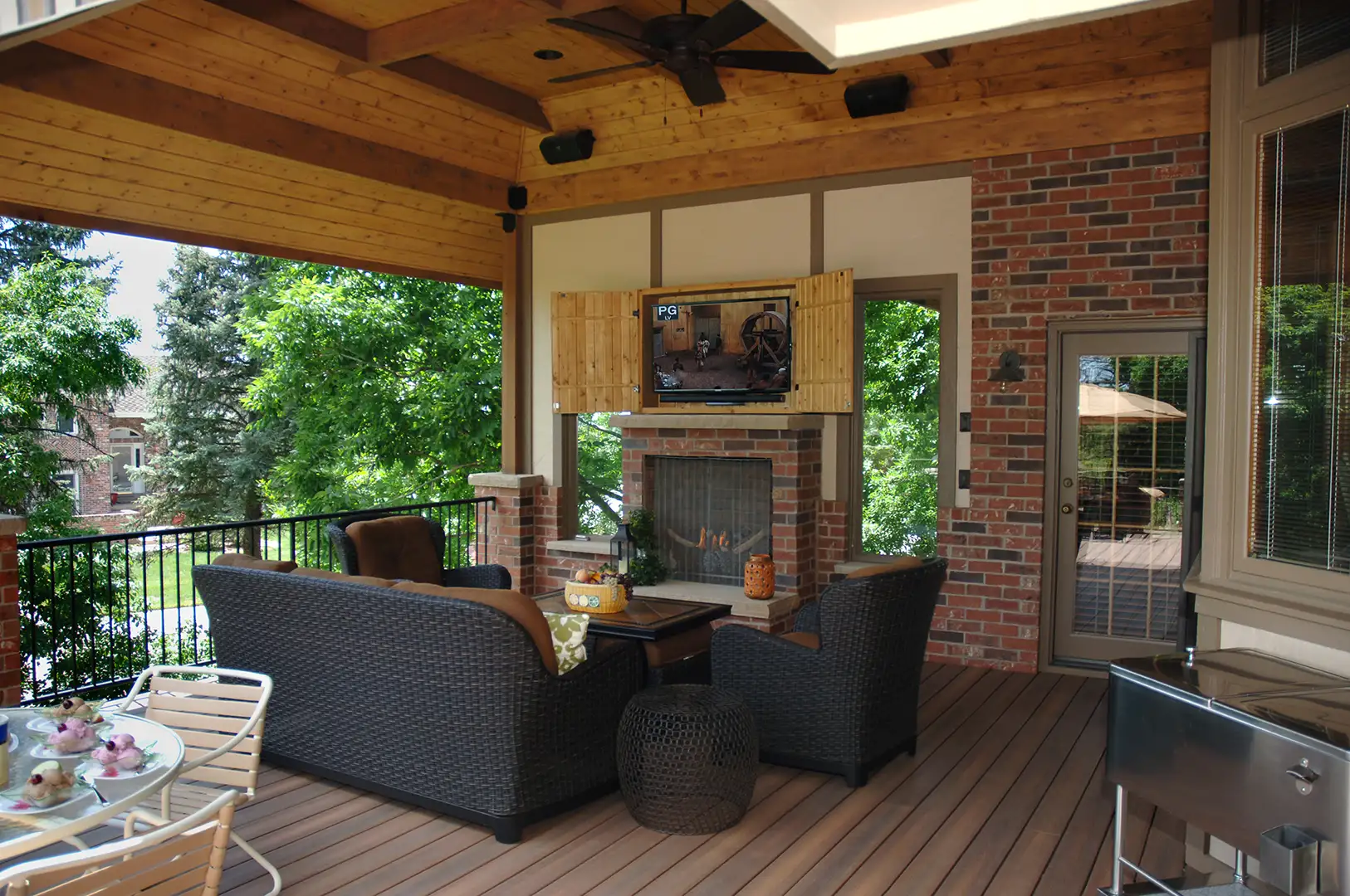 A deck roof cover turns a “nice when it’s perfect out” space into something you can actually use more often. It adds protection from sun, rain, and snow – and it gives you a place to relax or entertain without constantly checking the forecast. It can also help keep doors, thresholds, and deck surfaces drier, which means less wear over time.